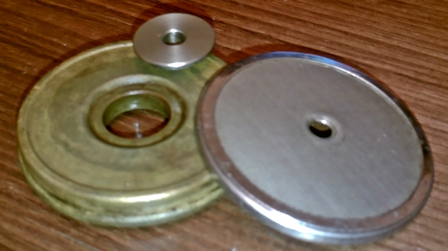Όπως το βλέπεις στη φωτό. Πρώτα θα πάρεις στο χέρι το ορειχάλκινο μέρος (το μεγάλο) όπως στη φωτό. Μετά θα βάλεις το μικρό ανοξείδοτο (διασκορπηστή) με τη μικρή του πλευρά μέσα στο ορειχάλκινο (να γίνει ένα πράγμα επίπεδο, πάλι όπως φαίνεται στη φωτό δηλαδή) και μετα θα βάλεις τη ντουζιέρα να το καπακώσεις. Γύρνα το μετά τούμπα και βάλε το στο grouphead και βίδωσέ το.