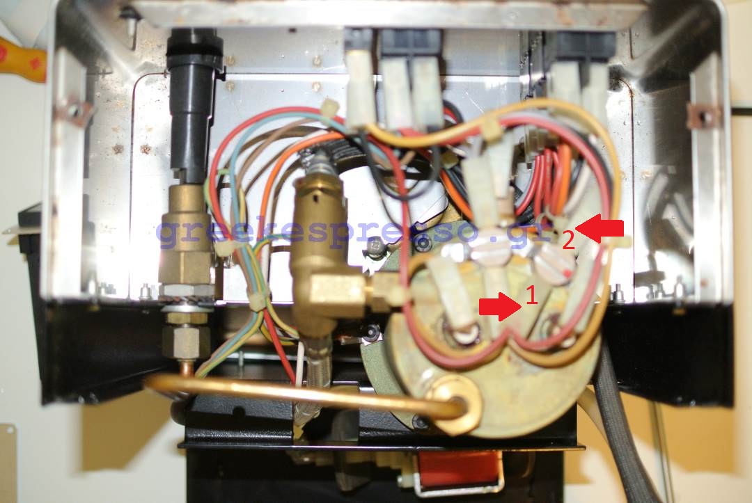 Όπως βλέπουμε από πίσω την μηχανή, παρατηρούμε κάτω αριστερά στο boiler της υπάρχει η κατάλληλη επαφή για σύνδεση με τα καλώδια γείωσης.