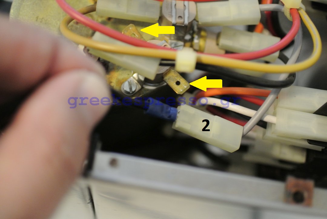 Ομοίως αφαιρούμε τον ακροδέκτη 2 του θερμοστάτη (με το γκρι καλώδιο)