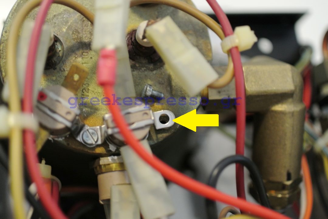 Για να προσαρμόσουμε τον Pt100 αισθητήρα, ξεβιδώνουμε την δεξιά βίδα του θερμοστάτη ατμού (αυτήν πιο κοντά στη εισαγωγή νερού) και την ξαναβιδώνουμε αφού προσαρμόσουμε τον κυκλικό ακροδέκτη του αισθητήρα με θερμαγώγιμη πάστα ώστε να περικλείει την τρύπα της βίδας και να έχει πολύ καλή επαφή με τα τοιχώματα του boiler της μηχανής.