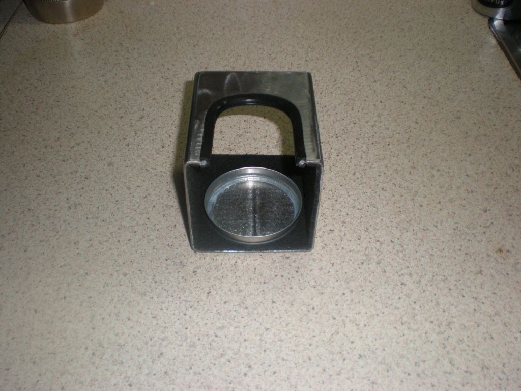 Έκοψα το κοιλοδοκό κατάλληλα, το γυάλισα και το πέρασα βερνίκι. Κόλλησα το λαστιχάκι για να ακουμπάει το portafilter, καθώς και εσωτερικά την τσόχα και το καπάκι του κεριού για βάση του tamper. foto 1, foto 2