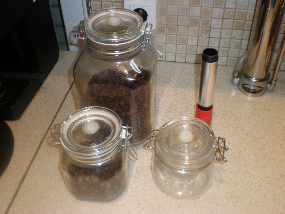 Τροποποίησα μια φθηνή τρόμπα του τζάμπο έτσι ώστε να τραβά αέρα και να σφραγίζει το βάζο. Σε δοκιμή που έκανα, το άδειο βαζάκι μετά από ένα μήνα ήταν ακόμα σφραγισμένο. foto
