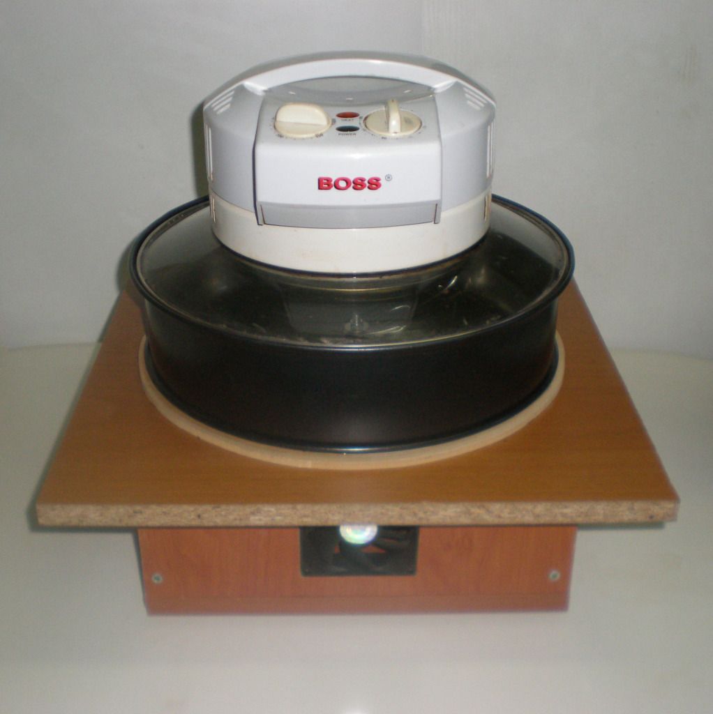 Υλικά: καπάκι turbo oven, ανοξείδωτο ταψάκι, ξύλα κόντρα πλακέ, μοτεράκι, ανεμιστηράκι.