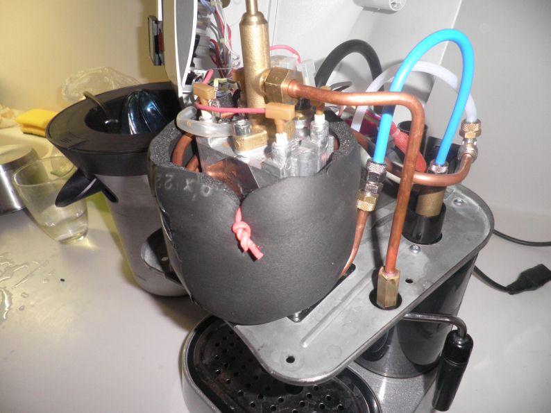 Είπα να το κάνω λίγο καλύτερο και της φόρεσα σκούρο φορεματάκι!! (μονωτικό σωληνώσεων) Αποτέλεσμα: με διπλό εσπρέσσο 17,2 γρ τιγκρατο 60 ml σε 29 sec, 20 λεπτά ζέσταμα μηχανής: