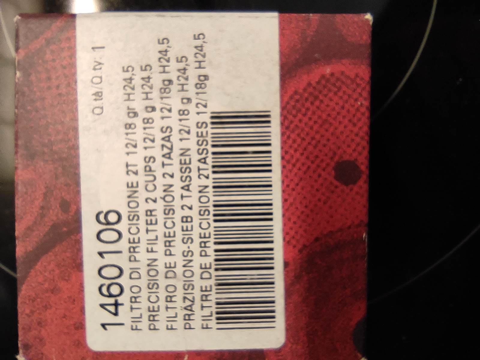 Το φίλτρο δείχνει ακριβώς ίδιο με αυτό που έχω και εγώ (βλ. φωτό), αλλά ο κωδικός έχει αλλάξει. Προφανώς τα καταστήματα έχουν κρατήσει την περιγραφή όπως ήταν παλιά. Χωράει σίγουρα 18 γραμμάρια με ξανθό καφέ, με μέτριο ψήσιμο η σκούρο πιο δύσκολα, αλλά στα 16-17 είσαι μια χαρά.