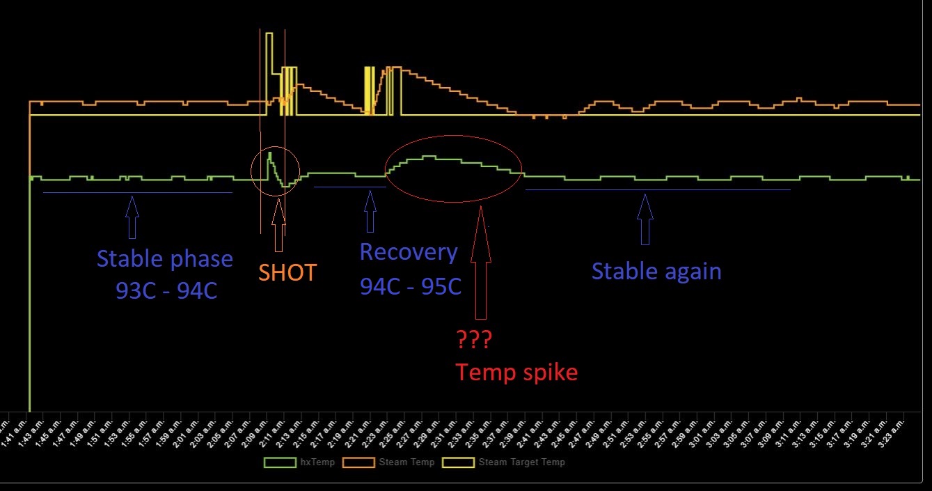 • κατά την εκχύλιση + ατμό ο αλγόριθμος στοχεύει στην σταθερότητα και μετά άμεση επαναφορά θερμοκρασίας με δυνατό boost