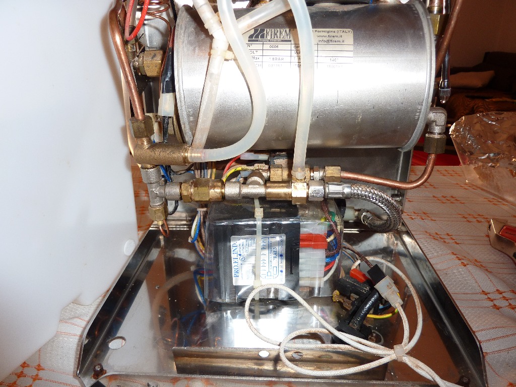 Τώρα τελευταία παρατήρησα ότι η πίεση στο μανόμετρο του group ποτέ δεν ανέβαινε πάνω από τα 9bars , ακόμα και με το τυφλό καλαθάκι.Καιρός για άνοιγμα και ρύθμιση της opv λοιπόν. Μια γενική άποψη από τα υδραυλικά της μηχανής λοιπόν: