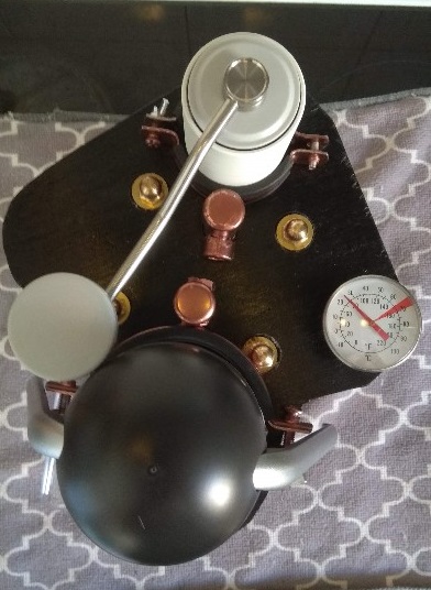 Αποτελείται απο μύλο , χειροκίνητη μηχανή , θερμόμετρο , και ζυγαριά ακριβείας .