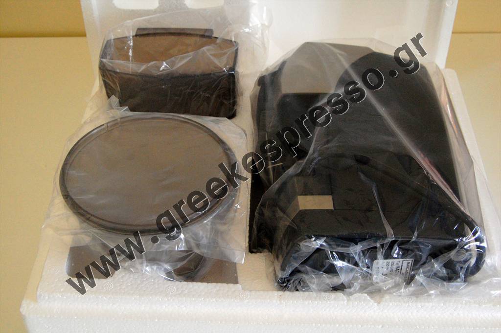 Από την συσκευασία του και μόνο καταλαβαίνει κάποιος ότι πρόκειται για ένα μύλο σχετικά μικρών διαστάσεων. Ό μύλος, και όλα τα συνοδευτικά του έρχονται καλά προφυλαγμένα μέσα σε ειδικά διαμορφωμένες θέσεις ανάμεσα σε δύο κομμάτια φελιζόλ. Ο μύλος δεν έρχεται ούτε με το ειδικό εργαλείο για το καλιμπράρισμα των burrs αλλά ούτε και με το φακελάκι με το καθαριστικό Grindz που αναφέρεται στο manual.