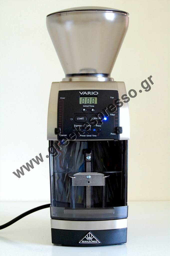 Στο παρακάτω κείμενο παραθέτω μια πρώτη παρουσίαση (σήμερα τον χρησιμοποίησα για πρώτη φορά) του πιο πολυσυζητημένου για οικιακή χρήση μύλου για espresso (και όχι μόνο) αυτή την περίοδο, του Mahlkoenig (Baratza στις Η.Π.Α.) Vario. Το κείμενο θα ανανεώνεται και θα εμπλουτίζεται συνεχώς οπότε μέχρι να ολοκληρωθεί και μετά από τις παρατηρήσεις, διορθώσεις και προτάσεις των μελών, θα πρέπει να αντιμετωπιστεί σαν μία απλή παράθεση των πρώτων εντυπώσεων εμπλουτισμένη με μερικές χρηστικές συμβουλές. Επίσης έμφαση θα δοθεί μόνο στα χαρακτηριστικά του μύλου από την πλευρά της συμβίωσης μαζί του και όχι στα τεχνικά χαρακτηριστικά του που αναφέρονται παντού.