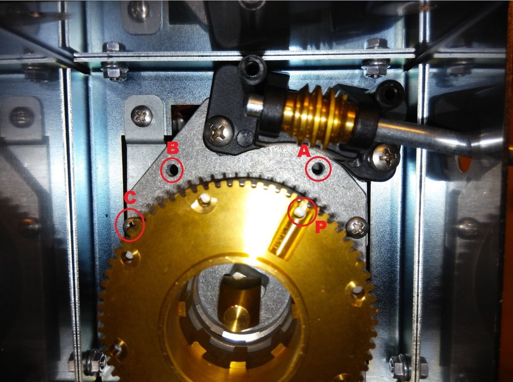 η χαρακιά στο σημείο P από τι κατάλαβα μπαίνει μια βίδα οριζόντια για να ασφαλίζει το δοχείο του καφέ, το σημείο A είναι η δεξιά βίδα της βάσης του άξονα του ατέρμονα