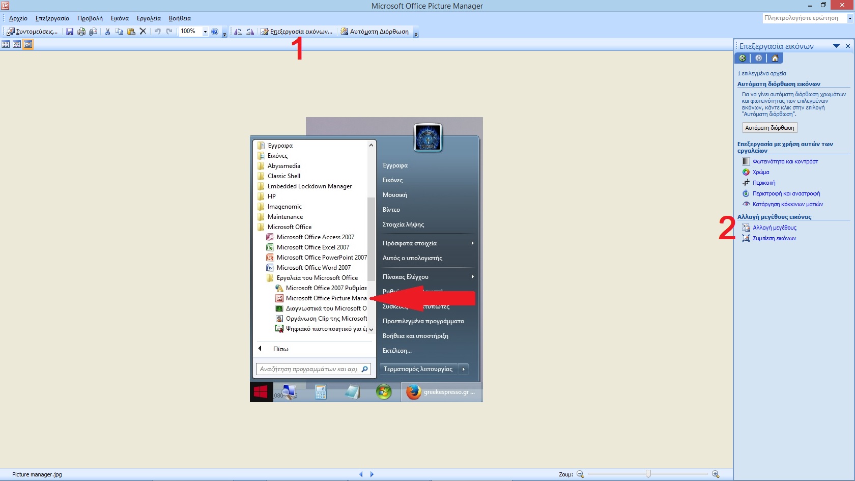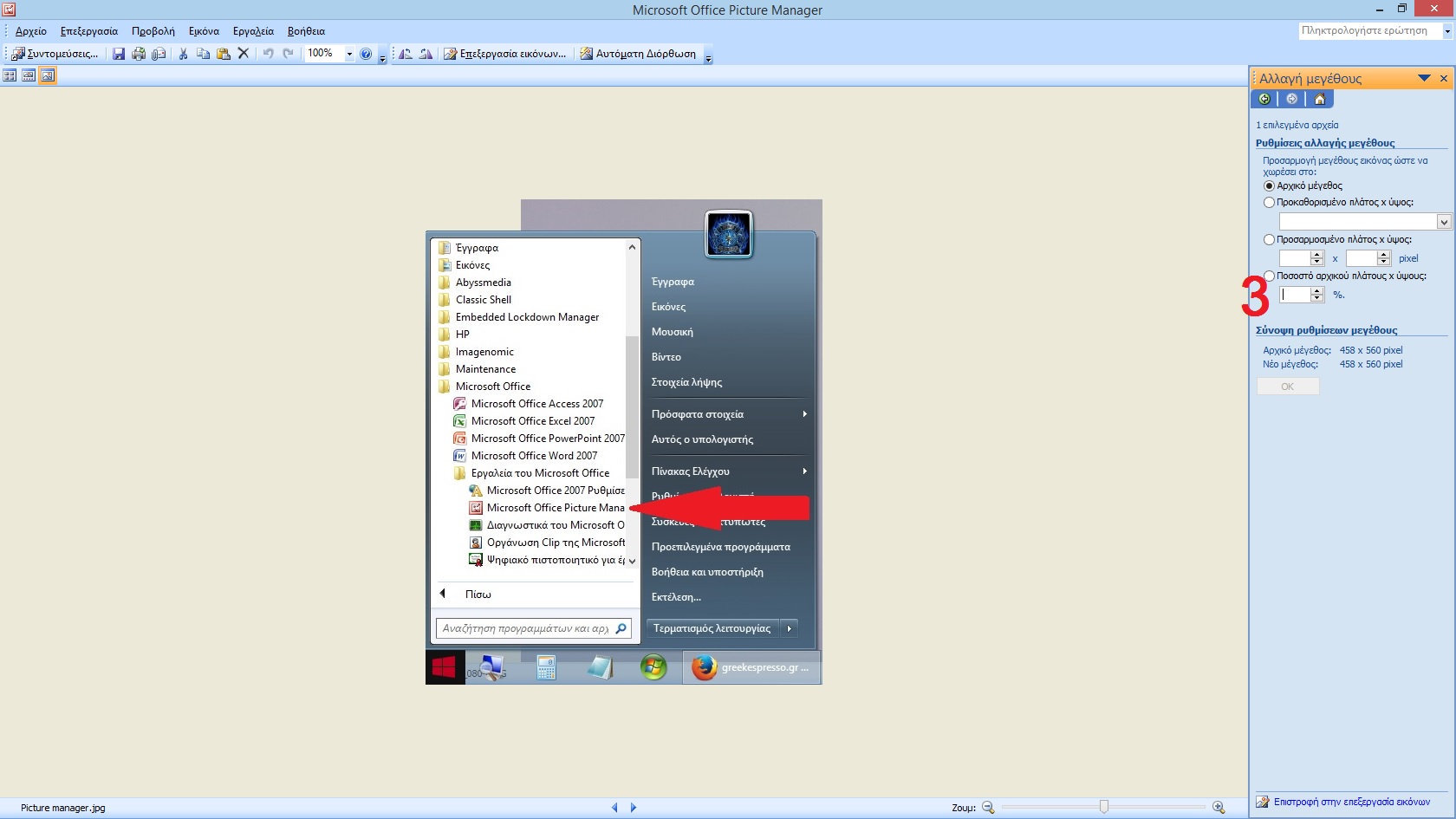 Για να τροποποιήσεις το μέγεθος των φωτογραφιών μπορείς να χρησιμοποιήσεις το Microsoft picture manager.