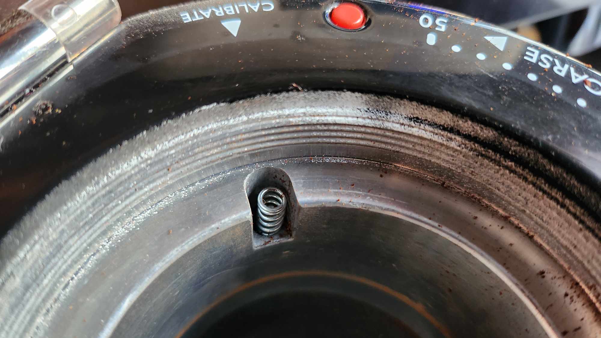 Κάνε ένα καλό καθάρισμα του μύλου να φύγει όλη η σκόνη καθαρισμού, πάρε ένα πινελάκι για ευκολία. Βγάλε και τα μαχαίρια και καθάρισε σχολαστικά και μέσα, και κάνε τη διαδικασία του calibration με το δαχτυλίδι, όπως δείχνει στο βίντεο: https://www.youtube.com/watch?v=jmDkR8XMtg8
