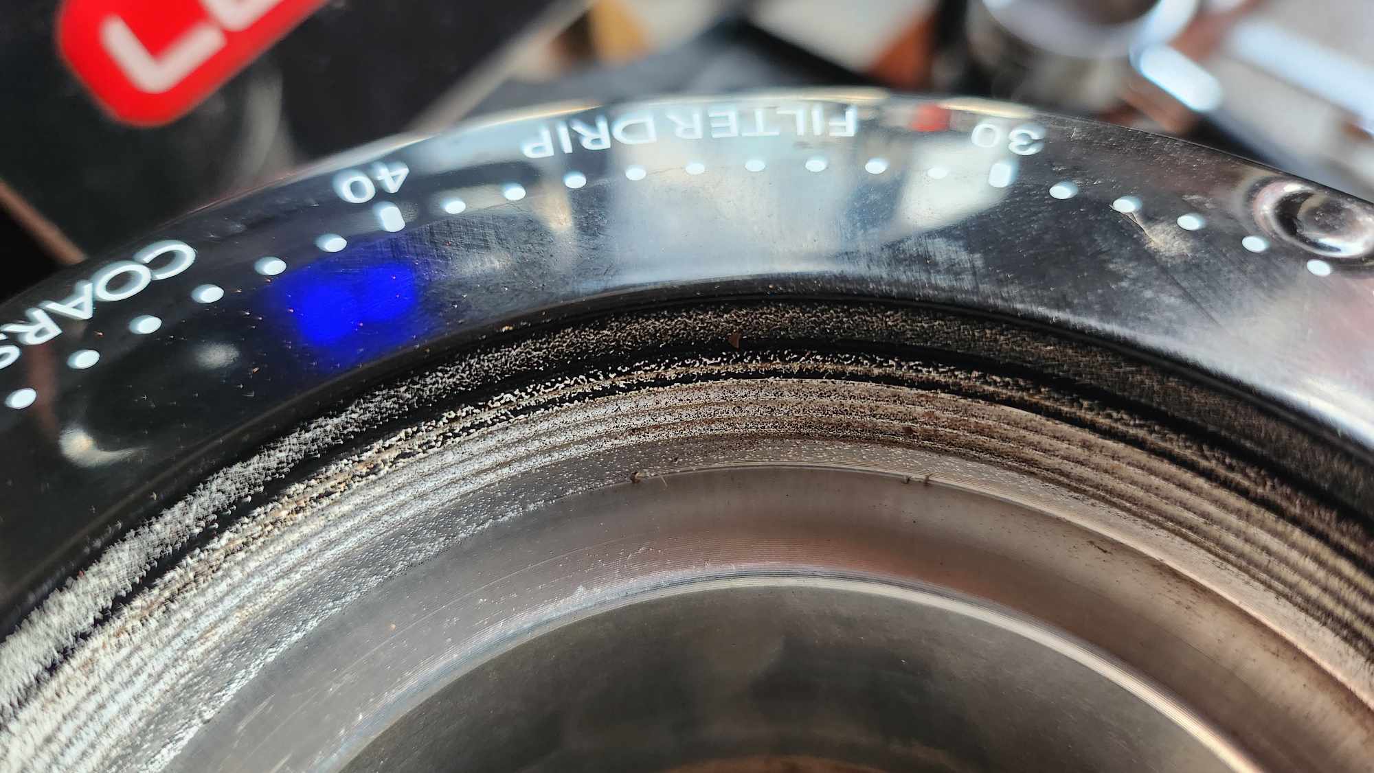μπορει η αποσταση των μαχαιρινων να μη συναδει με την αριθμηση του φορεα. τωρα αν αυτο μπορεις να το φτιαξεις καθαρα για το οπτικο και μονο δε ξερω. βρες το σημειο 0 που ακουμπανε τα μαχαιρια και δες ποσο πισω απο αυτο το σημειο αλεθεις για εσπρεσσο. αν εισαι πολυ κοντα στο σημειο που ακουμπανε τα μαχαιρια λογικα θα πρεπει να τα αλλαξεις.