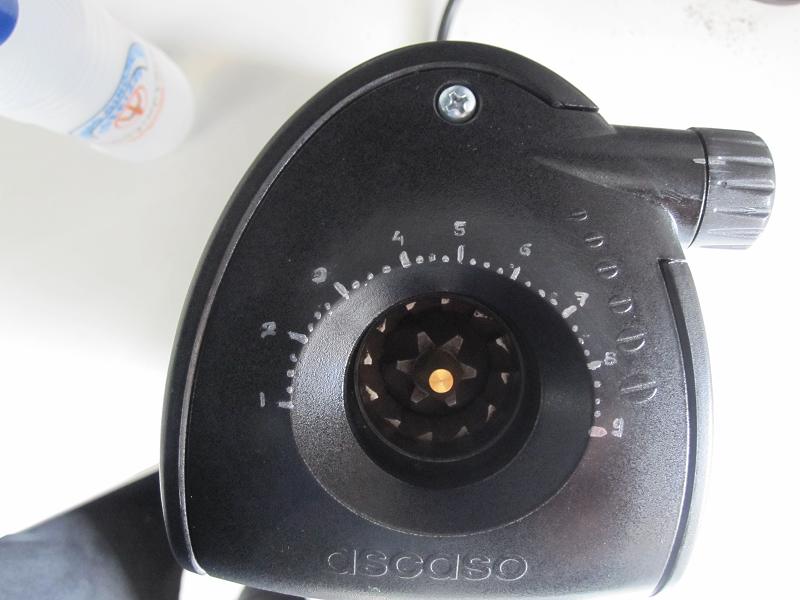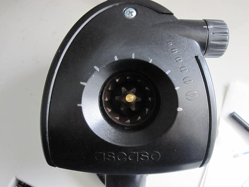 3.Τοποθετούμε το Hoper και μαρκάρουμε με ασημι μαρκαδορο (με μαυρο για τους κατοχους inox και λευκου) σημεια ανα πεντε γυρισματα του μοχλου πανω στη μαυρη βαση του μυλου.(εικονα 4,5)