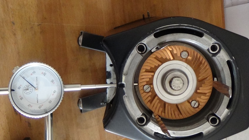 Ο άξονας και τα ρουλεμάν ήταν σε καλή κατάσταση, ενώ το runout του κινούμενου φορέα μαχαιριών ήταν 15μm. Τόσο μικρό σφάλμα αντιμετωπίστηκε με την μέθοδο των γυαλόχαρτων χρησιμοποιώντας φύλλα από Ρ500 έως Ρ1000. Στον πάνω φορέα χρησιμοποιήθηκαν σφήνες ( feeler gauge blade) 30-50μm . Τα 4 ελατήρια αντικαταστάθηκαν με καινούργια.